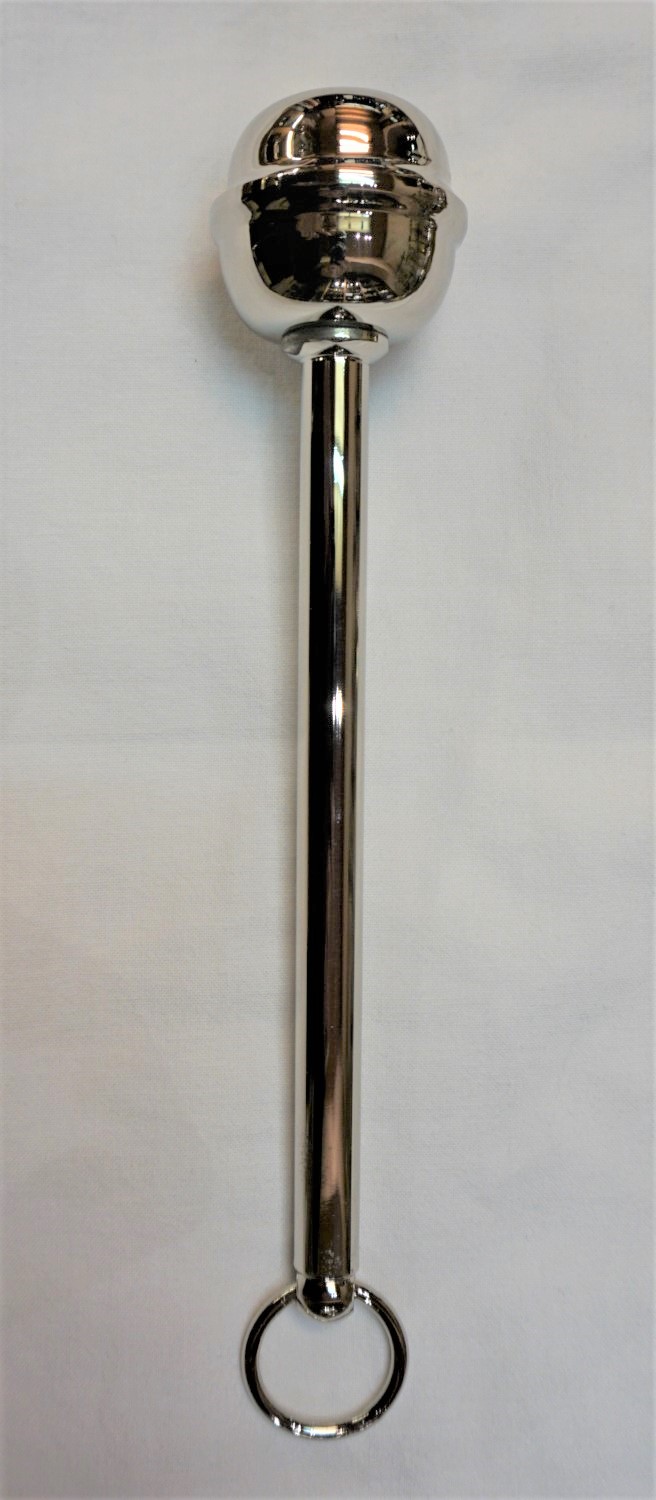 Klassisches Aspergill, vernickelt, wird in der Länge 30 cm angeboten, in der Kugel ist ein Schwamm enthalten, Ring zum Aufhängen. Der Aspergillkopfdurchmesser ist 5,5 x 5,5 cm.