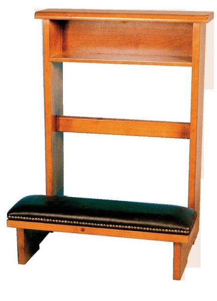 Betbank aus Holz, Knieteil gepolstert, Kunstleder. Die Betbank wird in 2 Varianten angeboten: