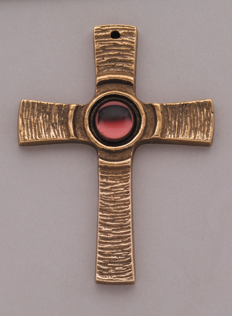 Kreuz, Bronze, roter Stein, Höhe 7.5 cm