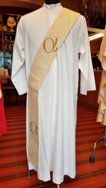 Diakonstola, mit gesticktem Alpha- und Omega Zeichen nur auf der Vorderseite, gefüttert.