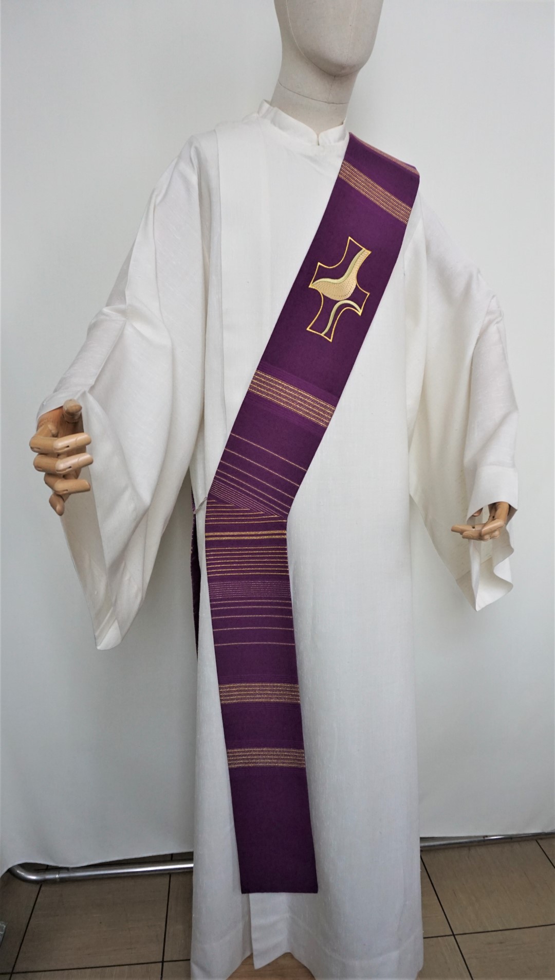 violette Diakonstola, moderne geschwungene Kreuze eingestickt, gefüttert, Stoff: Schurwolle/Trevira Gemisch