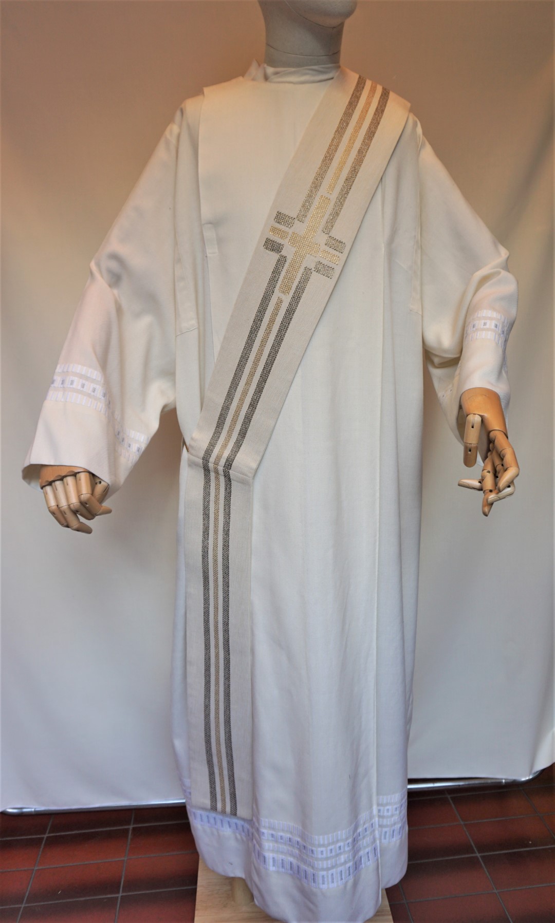 Diakonstola mit Kreuzzeichen und eingewobenen Gold- sowie Altgoldfäden auf Vorder- und Rückenseite,Stoff: Schuwolle