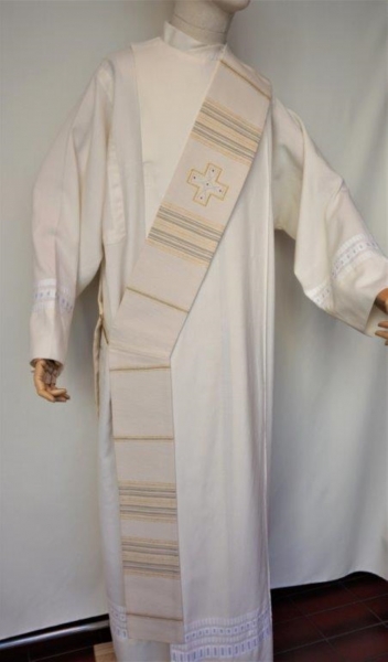weiße Diakonstola, Kreuze eingestickt, gefüttert, Stoff: Schurwolle/Trevira Gemisch