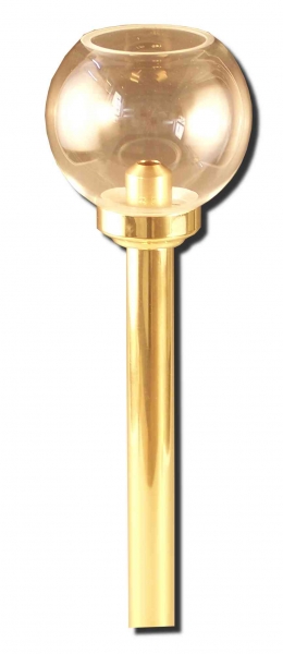 Flambeauxstab aus Messing, poliert. Diesen Flambeauxleuchter gibt es in 2 Längen. Bitte wählen Sie aus! Der Betrieb ist mit einer Kerze oder auch mit einer Ölkartusche möglich. Die Kartusche oder die Kerze werden von einer innen verschraubbaren Schraubkappe gehalten. Preis ohne Glas.
