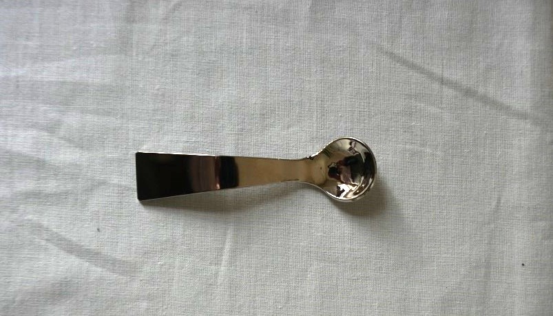 geschwungender Köffel für den Weihrauch, Messing vernickelt, Länge: 9,5 cm