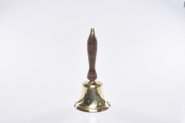 Messing Glocke an Holzstiel, Gesamthöhe 21 cm, Glockendurchmesser: 10 cm, schöner und deutlicher Klang
