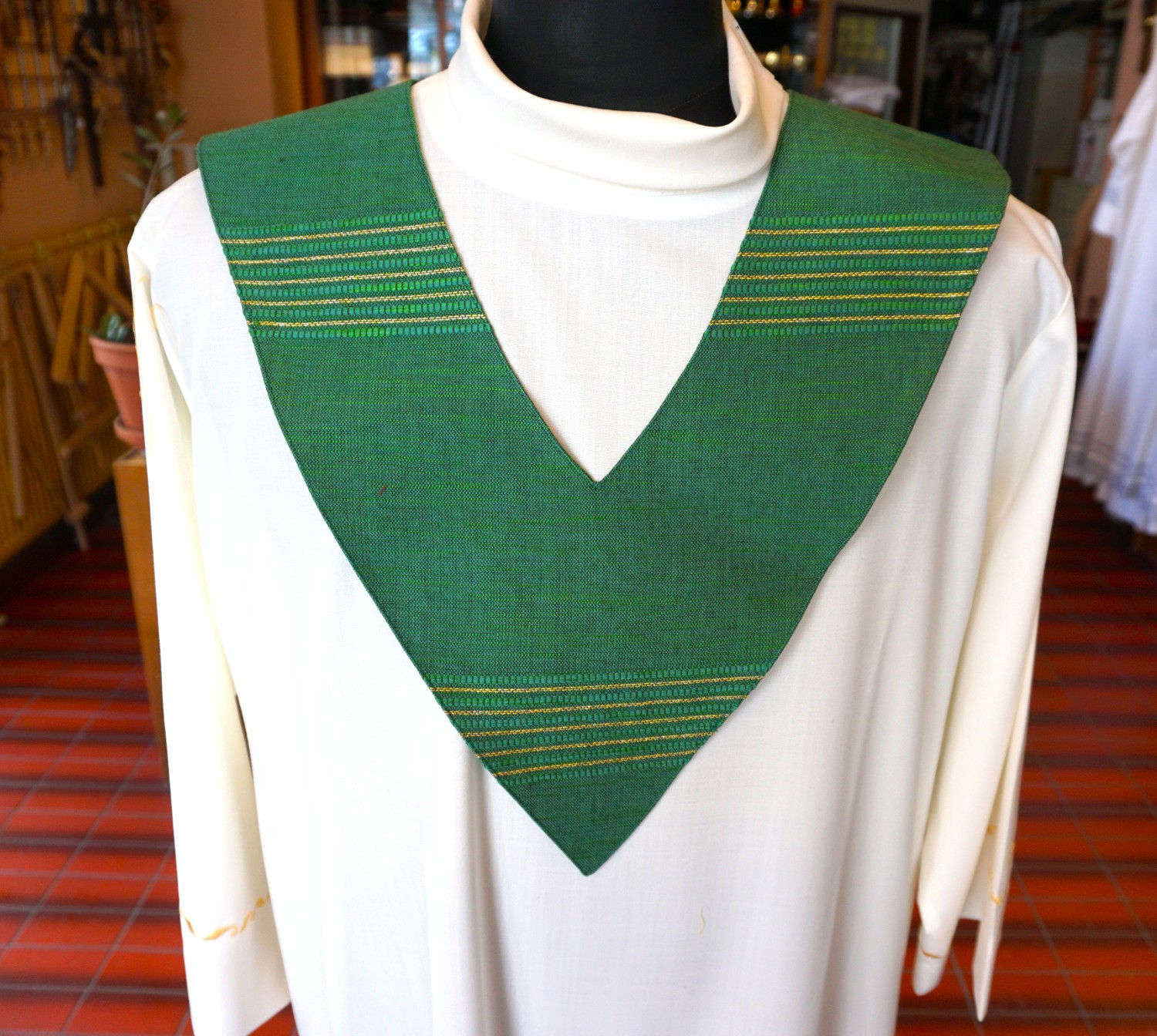 grüner Kragen für Lektoren und Lektorinnen sowie Wortgottesdienstleiter, Breite ca 12,5 cm, gefüttert, Quereinwebungen auch mit Goldlurexfaden