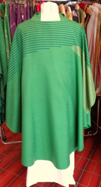 grünes modernes Messgewand, Motiv: "Dreifaltigkeit", ungefüttert, mit Innenstola, Stoff: Schurwolle/Trevira Gemisch