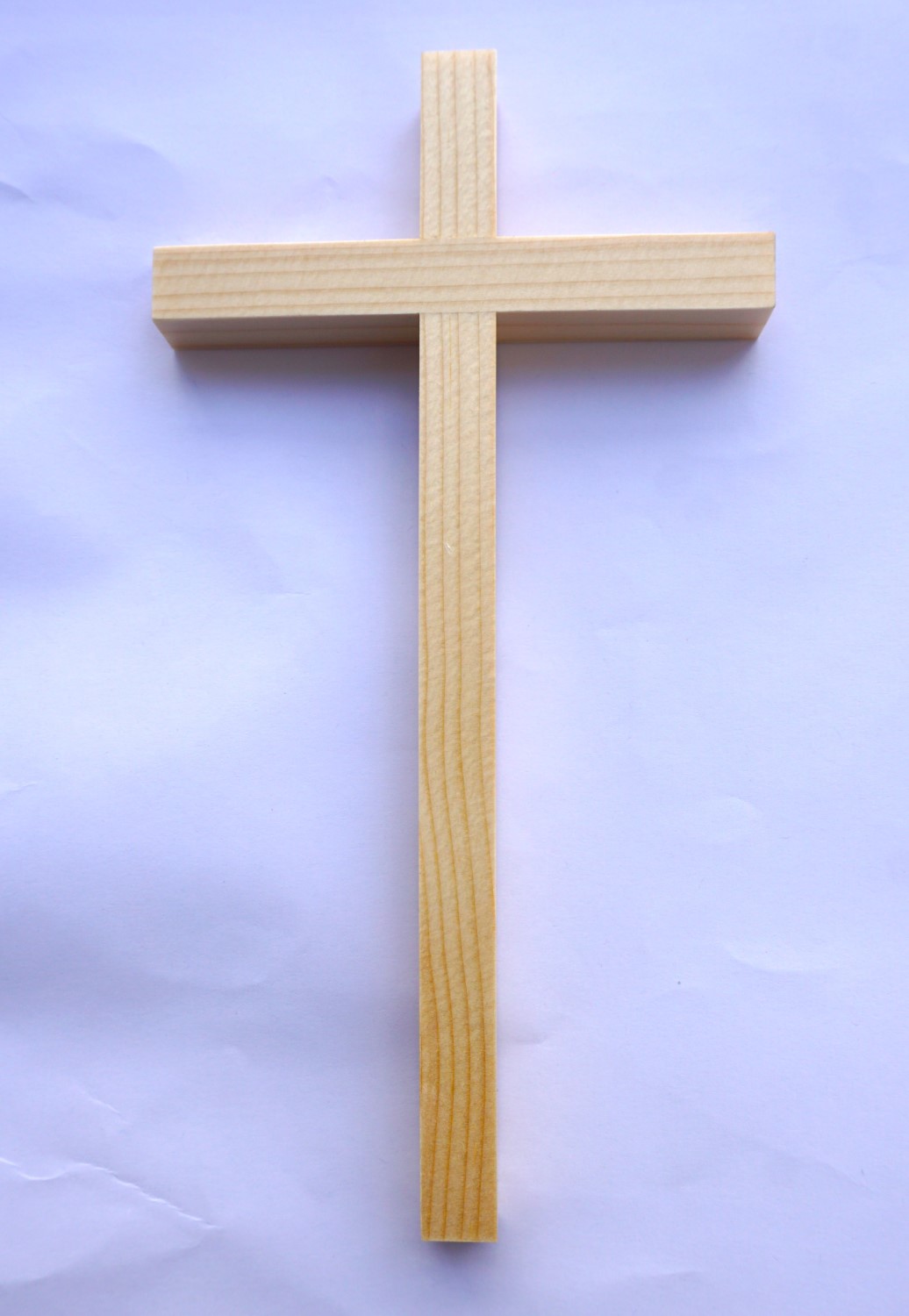 Das schlichte Wandkreuz ist aus Fichtenholz hergestell und 20 cm hoch.