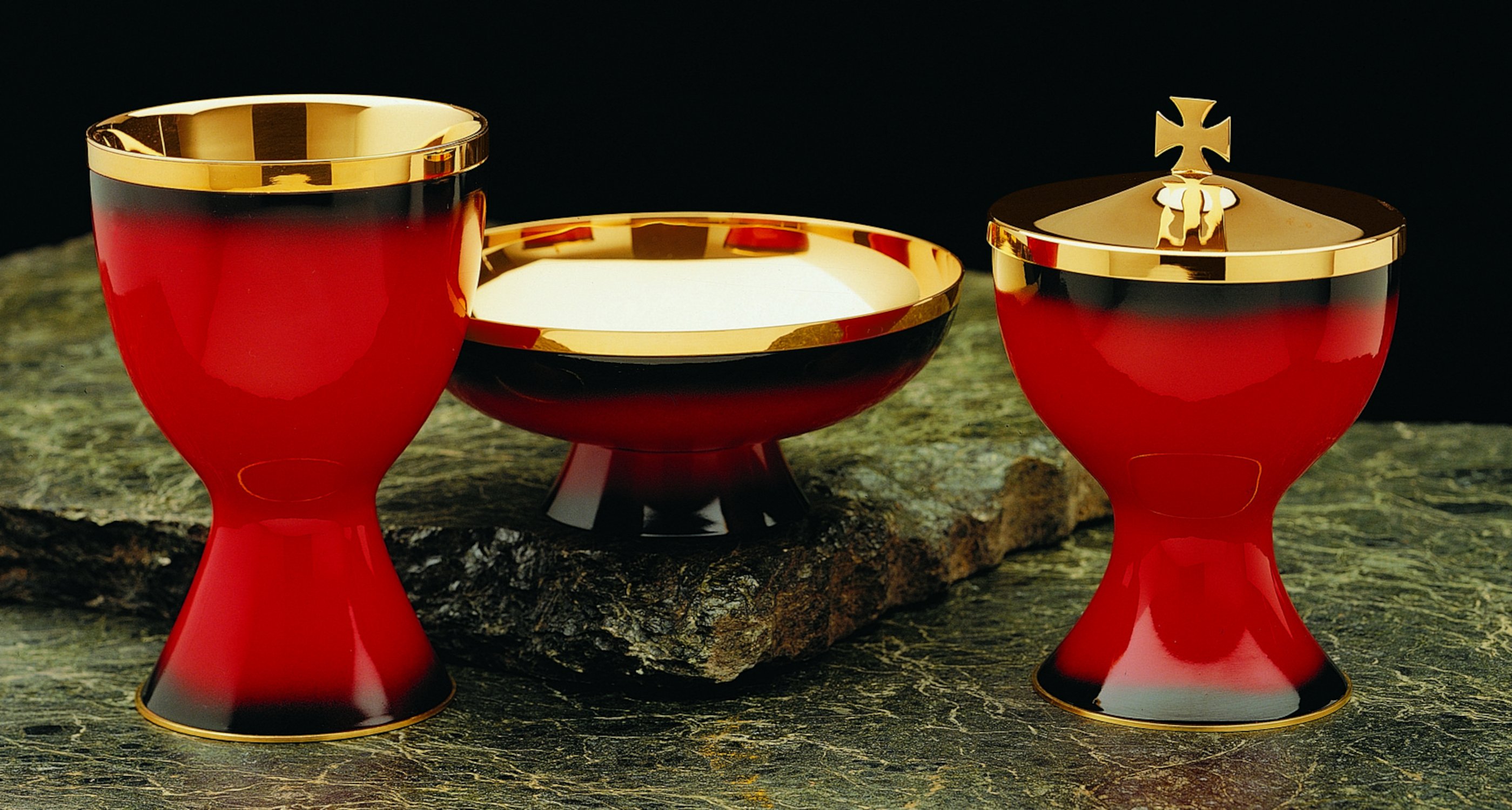 Die Geräte beinhalten jeweils eine aus Messing hergestellte vergoldete Cupa, die Außenseiten sind aus rotem Email. Details: