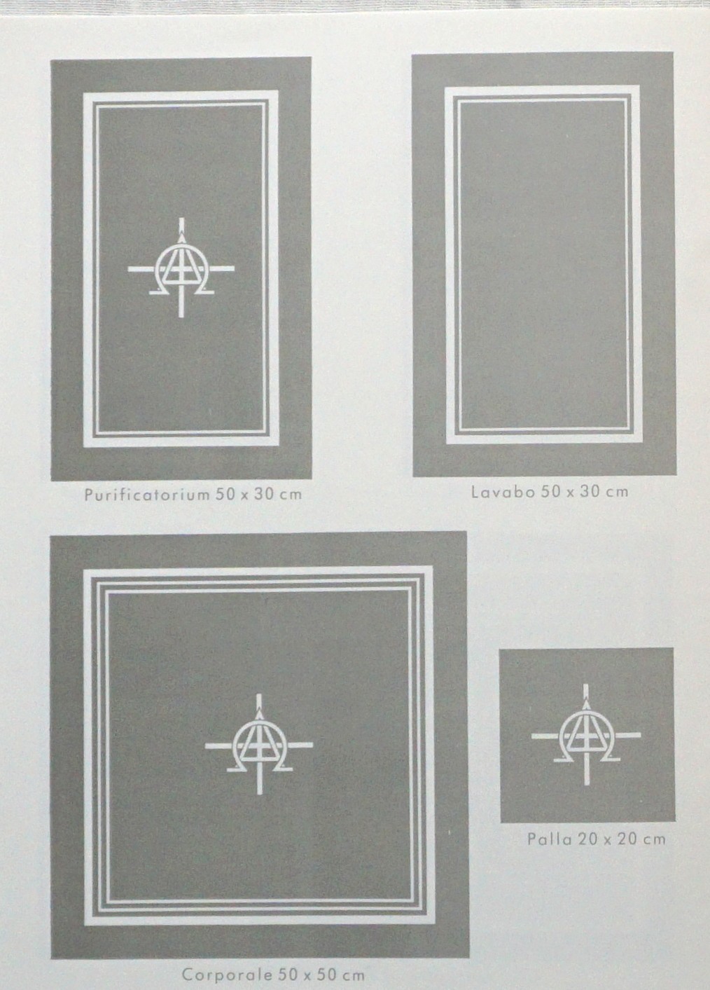 Reinleinenkelchwäsche mit eingewobenem Motiv: Alpha und Omega, Dimensionen: Palla: 17 x 17 cm, Purificatorium: 50 x 30 cm, Corporale: 50 x 50 cm, Lavabo: 50 x 30 cm, die Palleneinlage ist einfach aus der Leinenhülle zwecks Waschens herauszunehmen. Sie können gerne die einzelnen Teile bestellen aber auch das Set aus den 4 Teilen