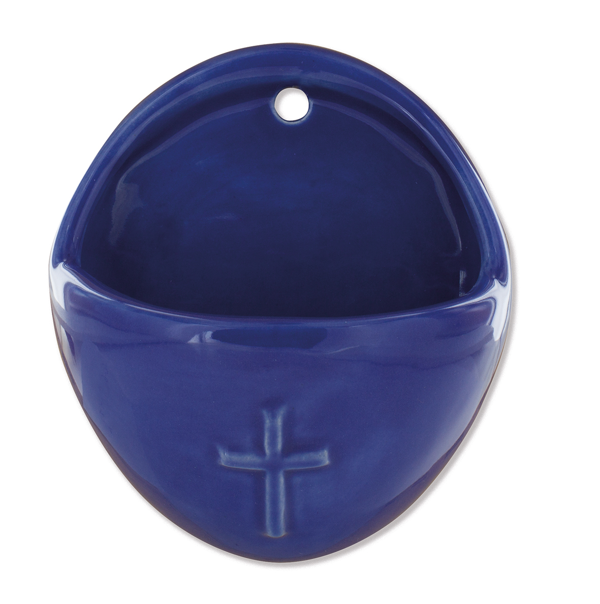 Wandweihwasserbecken aus Keramik, blau glänzend glaciert, Höhe: 9,5 cm, Breite: 8,5 cm
