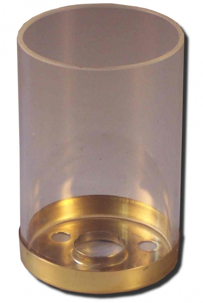 Acrylglaszylinder 13 cm hoch, Durchmesser 9 cm, Sockel Messing poliert