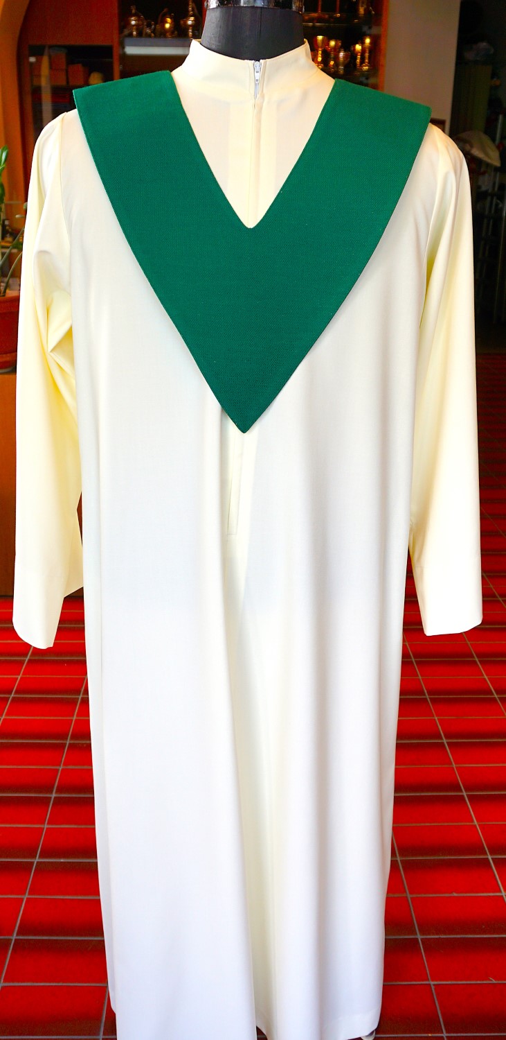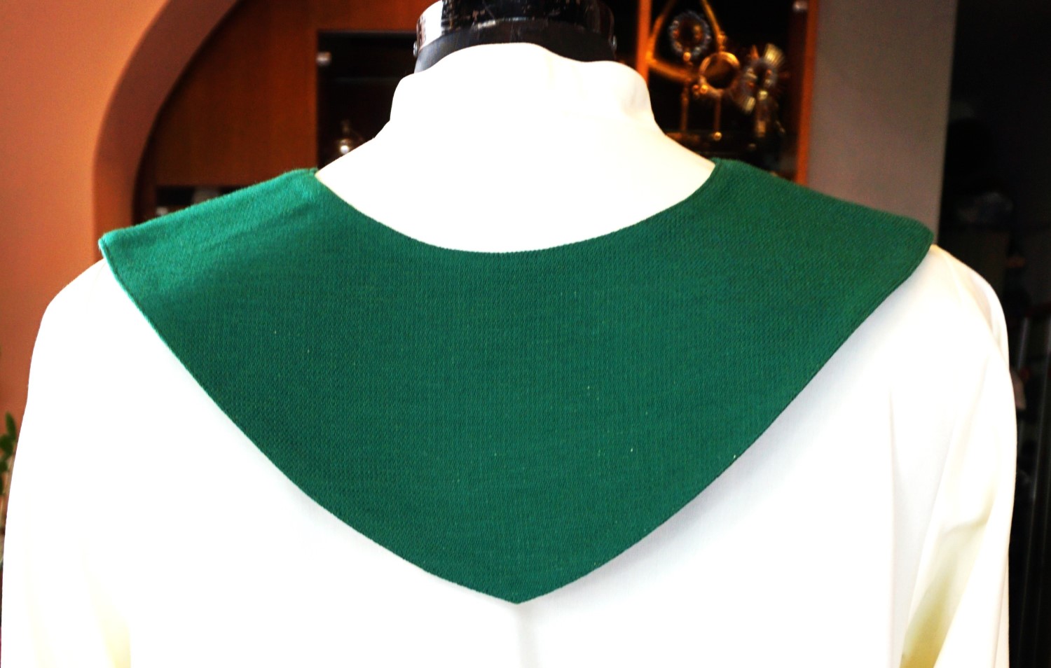 grüner Lektorenkragen: wird über der Albe getragen, aus Stoff gefertigt, gefüttert,