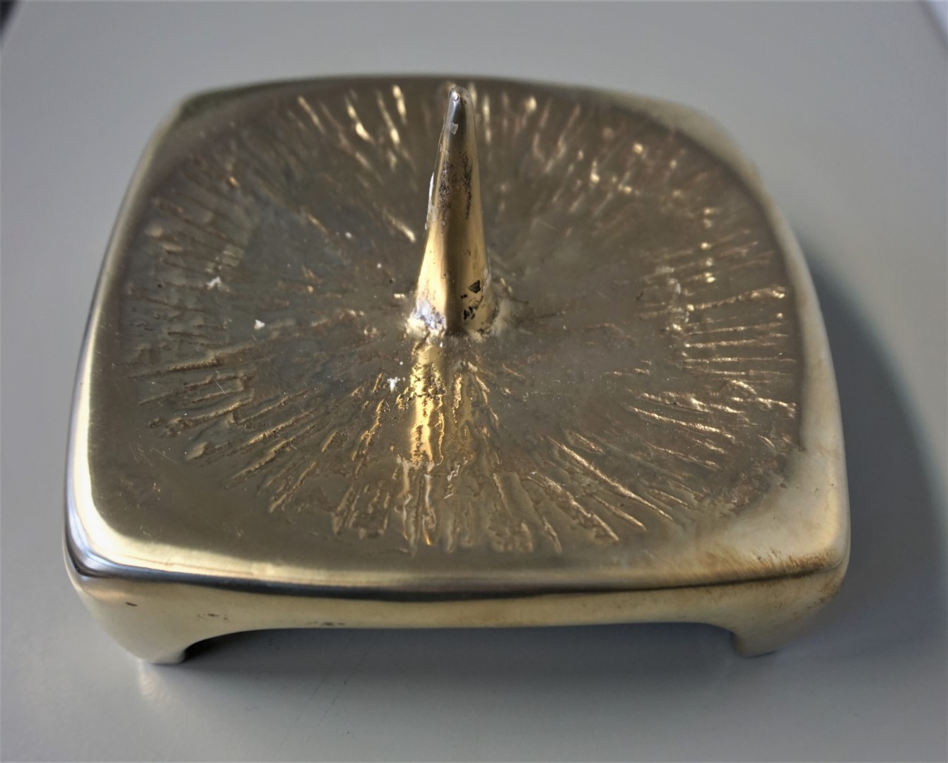 quadratischer Leuchter aus Bronze- Gelbguß, patiniert, Maße: 15 x 15 cm