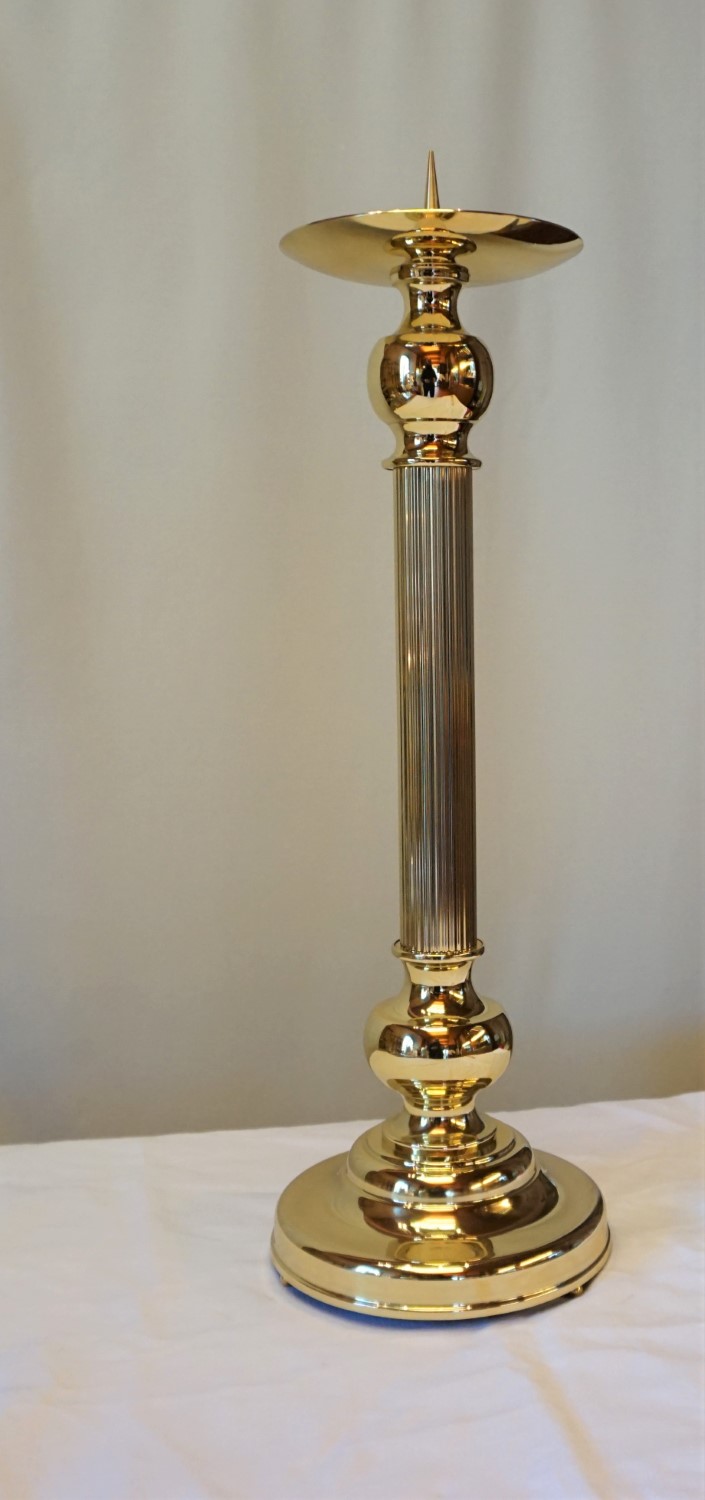 Messingleuchter, gerieftes Rohr, poliert, Es kann dieser Leuchter in den Höhen 40, 50, 60 und 100 cm cm angeboten werden. Die Leuchter mit einer Höhe von 40 bis 60 cm haben jeweils einen Fußdurchmesser von 18 cm und einen Tellerdurchmesser von 15 cm. Der Leuchter mit einer Höhe von 100 cm hat einen Fußdurchmesser von 26 cm und einen Tellerdurchmesser von 18 cm. Bitte beachten Sie, dass die bei einer etwaigen Bestellung des Leuchters mit einer Länge von 100 cm am Ende der Bestellung angegeben Frachtkosten nicht stimmen, da es sich beim Versand dieses Leuchters um ein Sperrgut handelt und dafür gesonderte Frachtkosten anfallen. Diese kann ich im Einzelfall gerne für Sie zuvor erheben. Bitte wählen Sie aus!