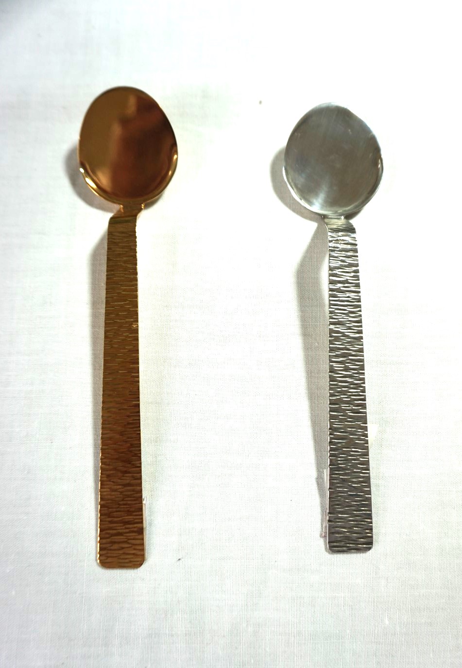 2 Einzelstücke, Grundmaterial Messing, das eine vergoldet, das andere versilbert, beide gehämmert, Länge jeweils 15,5 cm. Bitte wählen Sie aus!