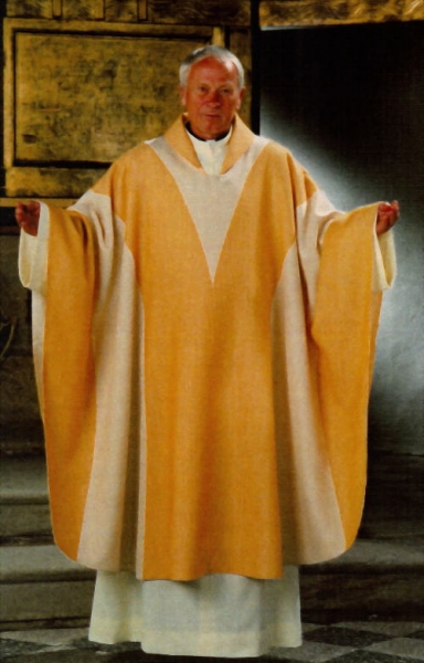 cremefarbene Casel, Motiv "Auferstehung", mit Innenstola, Stoff: Schurwolle/Trevira Gemisch, gefüttert