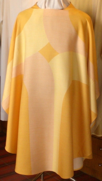gelbe moderne Messgewand, Kreuzsymbol, ungefüttert, Innenstola, Stoff: Schurwolle/Trevira Gemisch