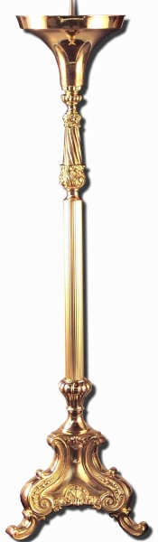 Messingleuchter mit grieftem Rohr, poliert, Tellerdurchmesser: 24 cm. Diesen Leuchter gibt es in unterschiedlichen Höhen. Bitte wählen Sie aus! Bitte beachten Sie auch, dass die bei einer etwaigen Bestellung ausgewiesenen Versandkosten unrichtig sind, da diese Leuchter wegen der Länge als Sperrgut gewertet werden und daher gesonderten Versandkosten unterliegen. Auf Wunsch kann ich Ihnen diese gerne im Vorhinein berechnen.