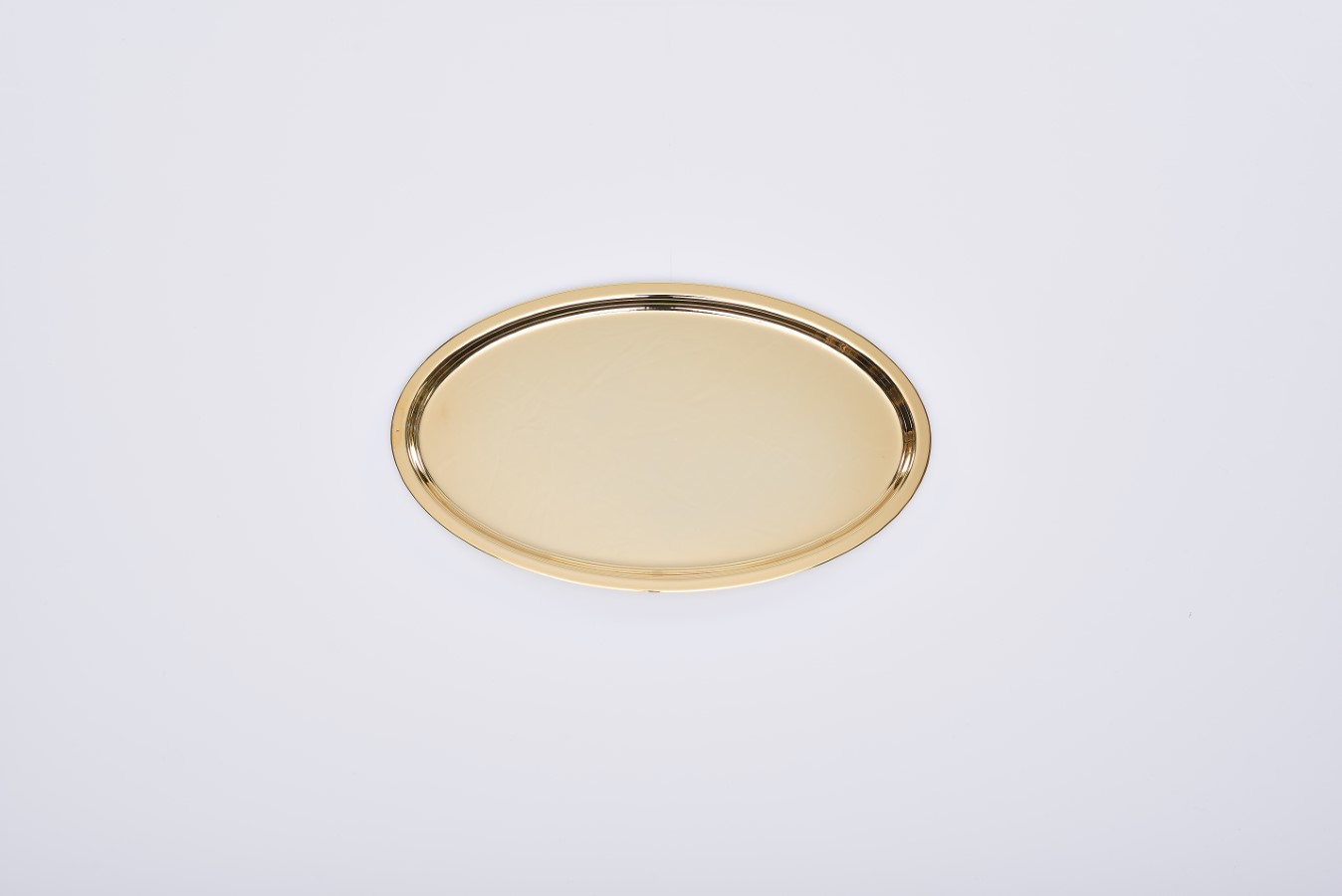 ovales Tablett Maße: 23 x 14 cm. 2 Ausfertigungen: vernickelt oder vergoldet: bitte wählen Sie aus!
