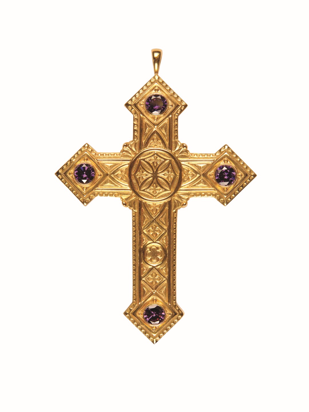 Pectorale aus Sterling Silber, vergoldet, Maße: 11 x 7 cm, Amethyste, Kette ist im Preis nicht inbegriffen