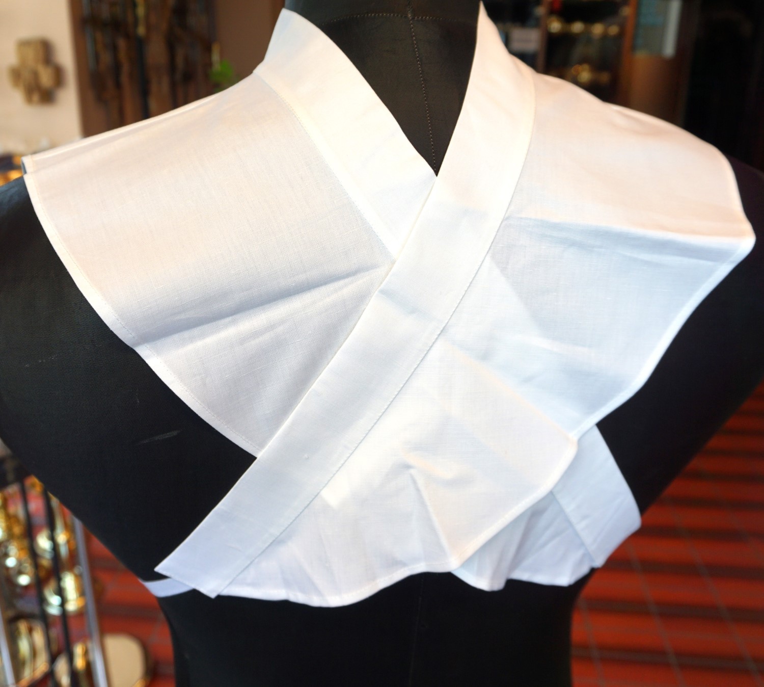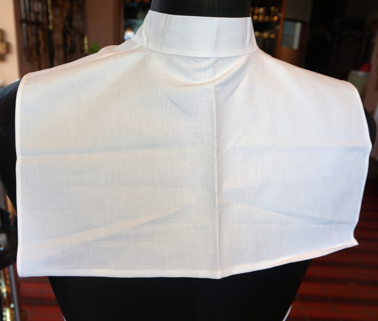 Schultertuch vorne eckig auf Rückseite rund geschnitten, mit Baumwollbändern zu schließen
