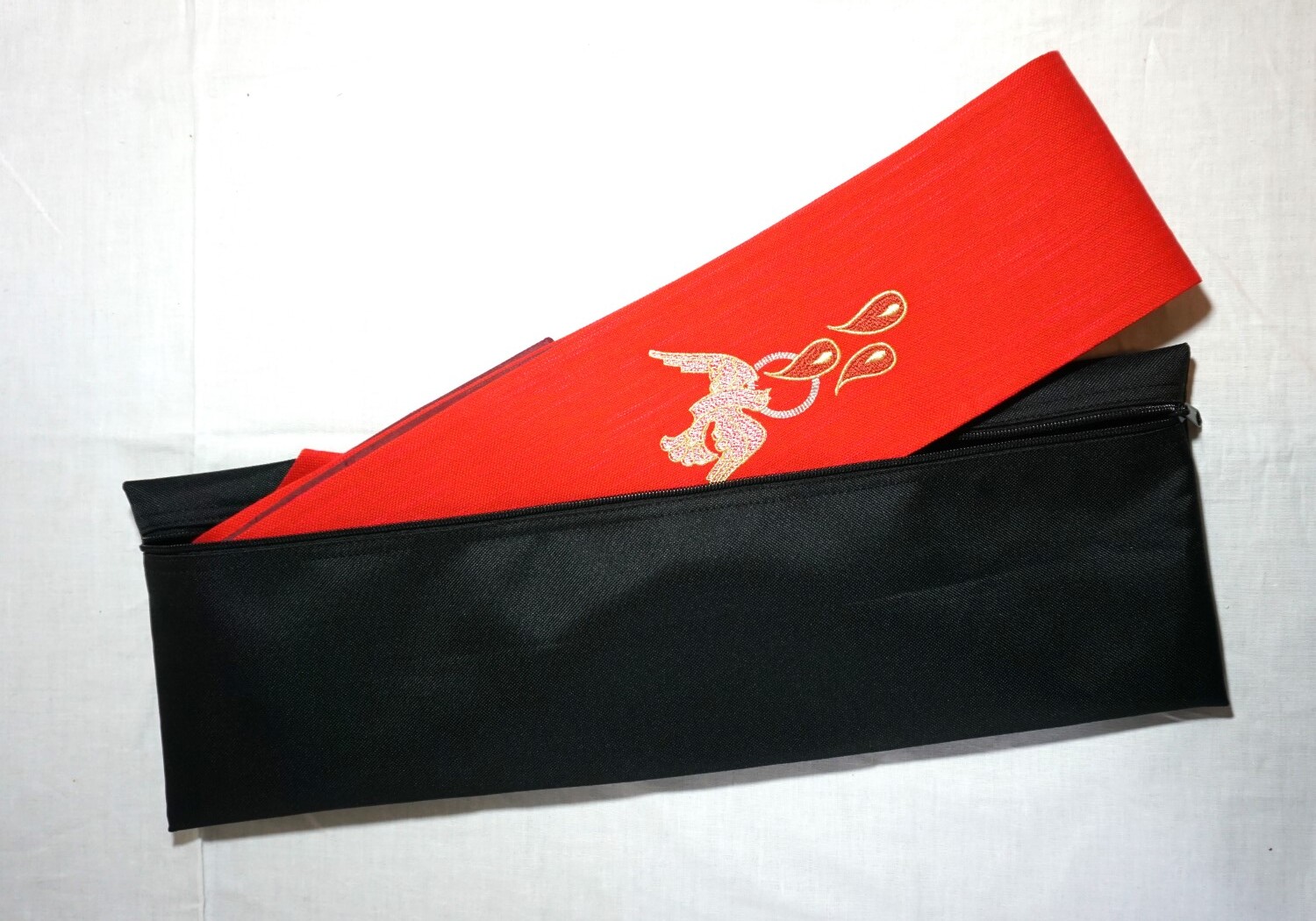 Tasche aus schwarzem Kunststoff, wasserabweisend, zum geschützten Transport von Stolen, Tragegriff, Zippverschluss über die gesamte Länge, Maße: 54 x 18 cm