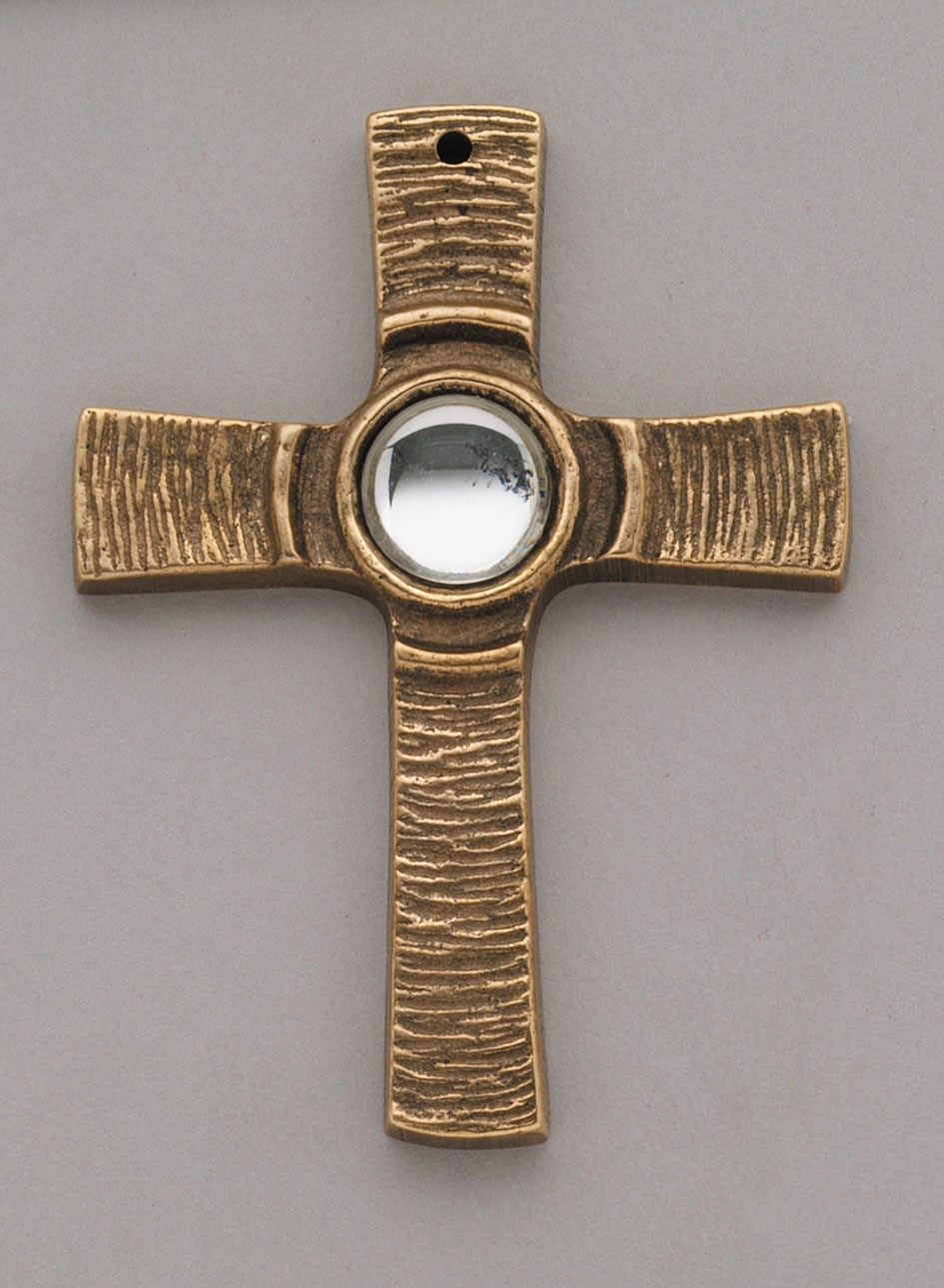 Kreuz aus Bronze, mit Glasstein, Höhe: 7,5 cm, um den Hals zu tragen