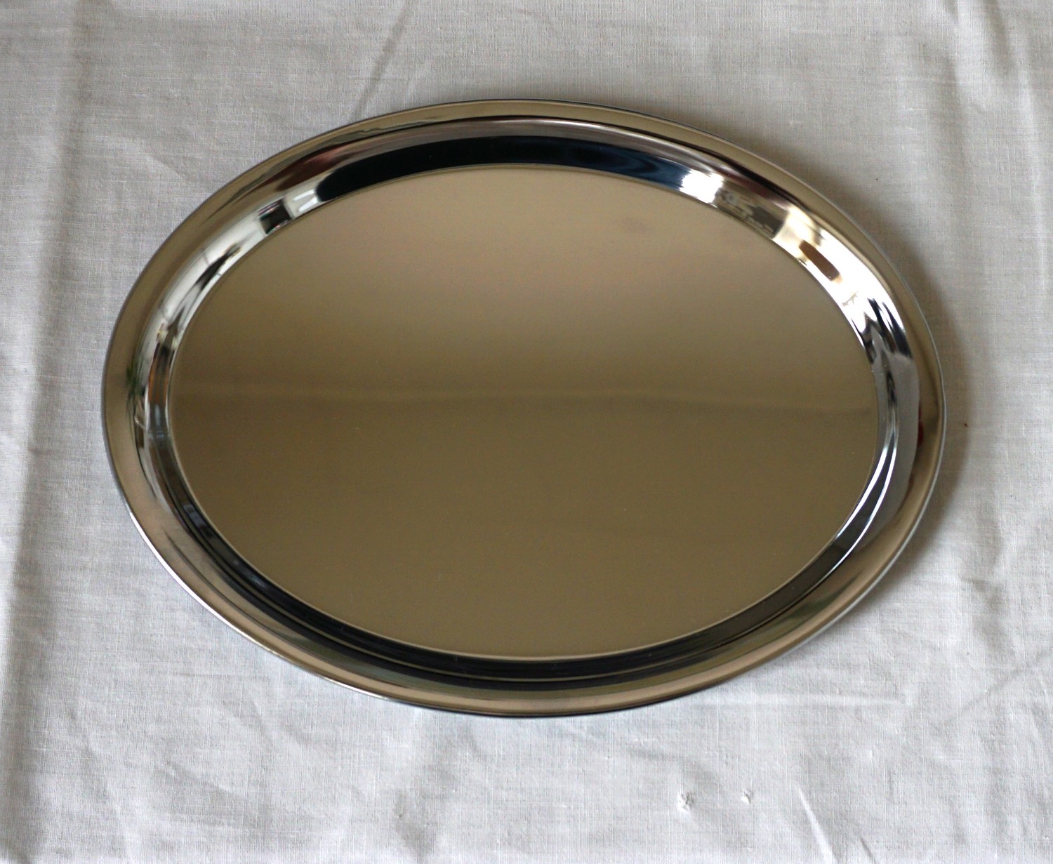 ovaler Teller aus Edelstahl, auch zum Reichen der Messweinkännchen, 2 verschiedene Dimensionen, bitte wählen Sie aus!