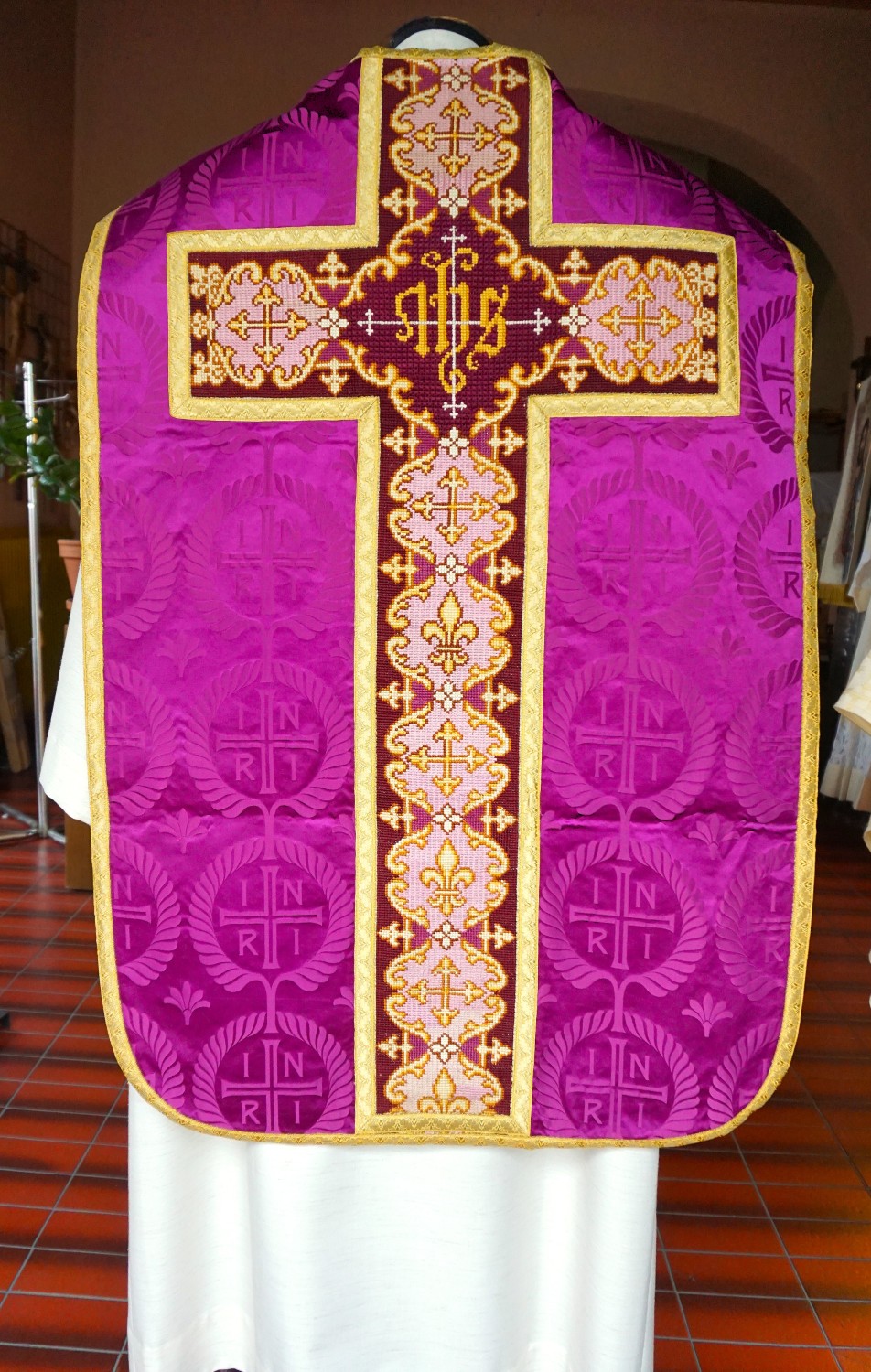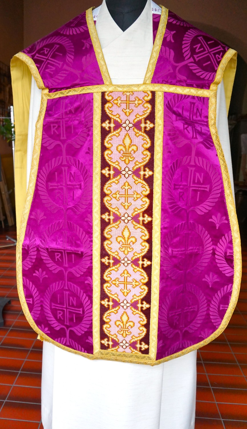 römische violette Casel, Gobelinstickerei