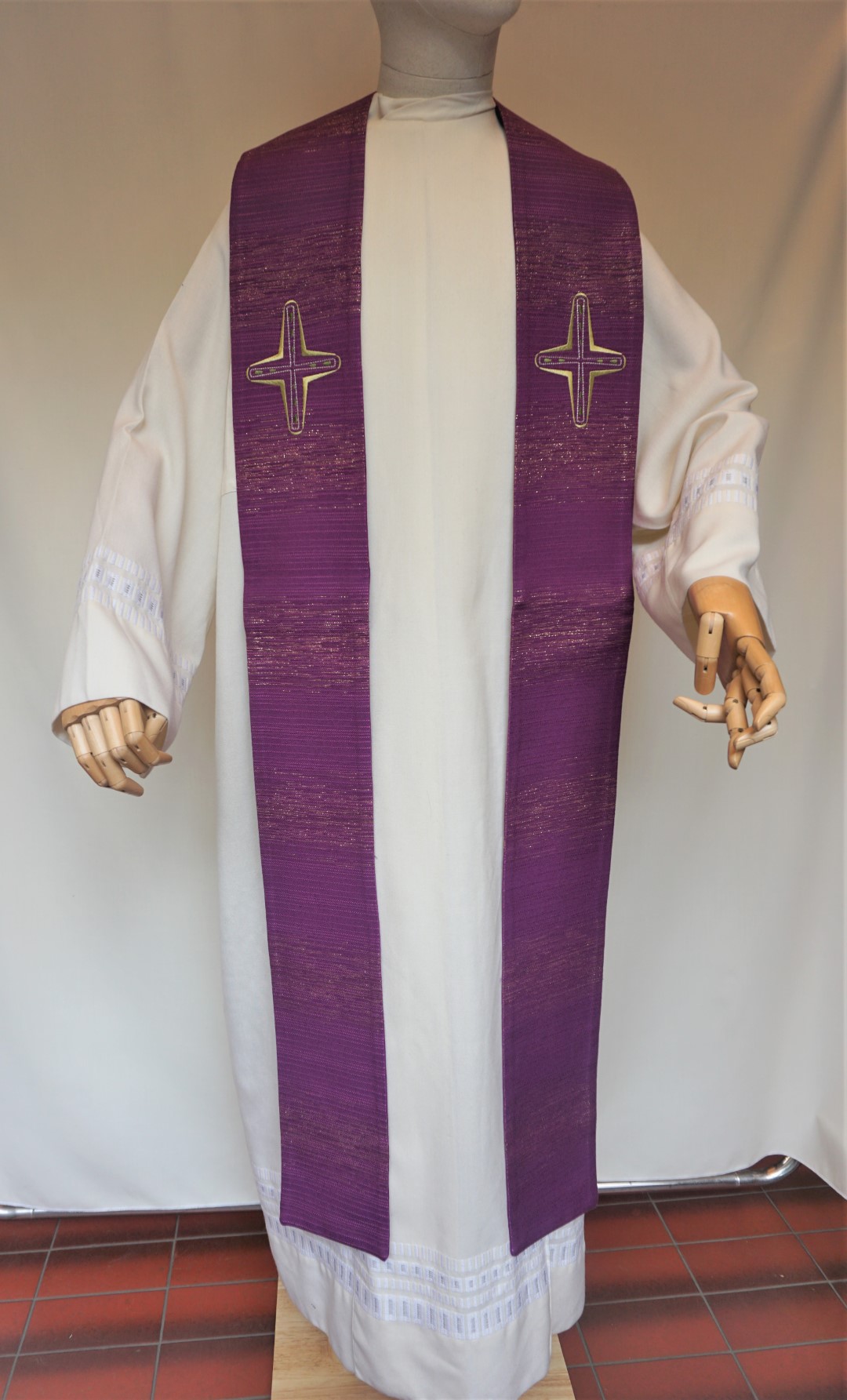violette Priestertsola mit maschinell eingestickten Kreuzen, Lurexfäden