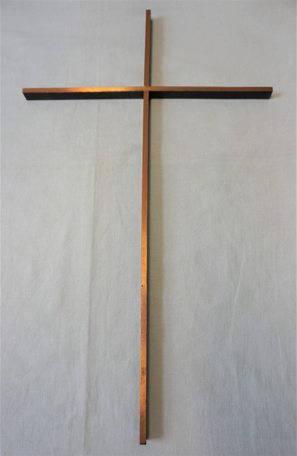 Kreuz aus Kupfer, glatt, Kreuzhöhe: 40 cm, Breite: 24 cm. Balkenstärke: 0,5 cm. An der Wand aufzuhängen.