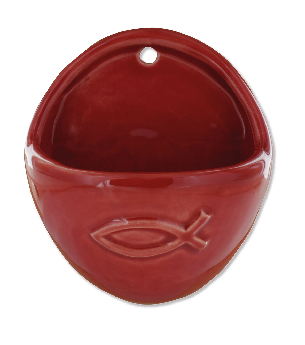 Wandweihwasserbecken aus Keramik rot glänzend, Fischmotiv, oval