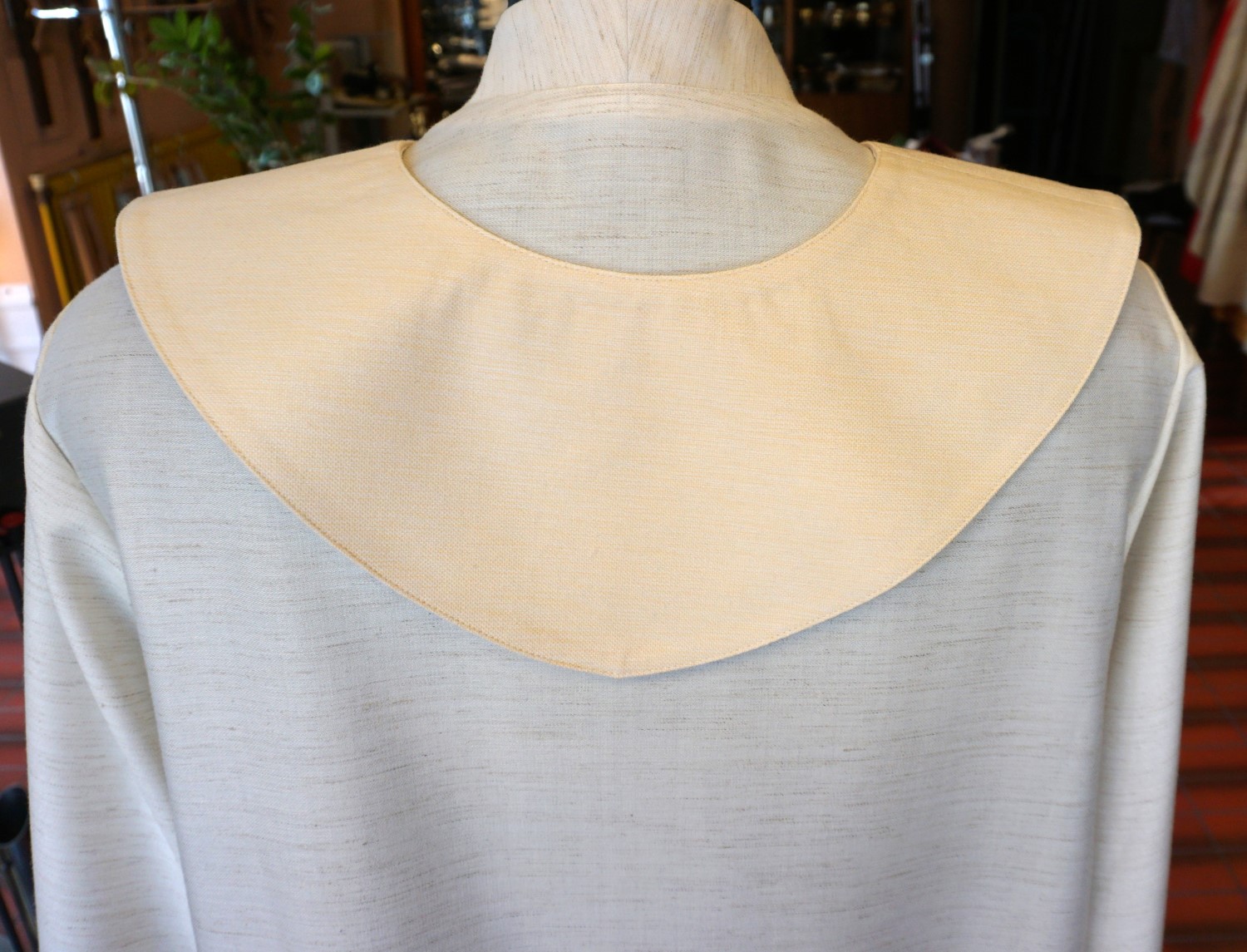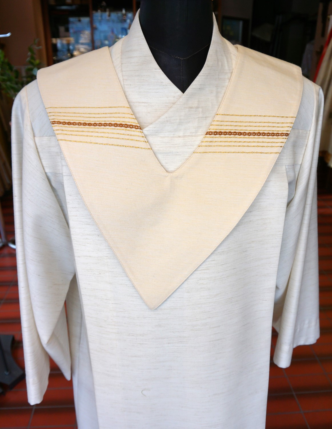 weißer/cremefarbener Kragen für Lektoren und Wortgottesdienstleiter und Leiterinnen, Breite: ca 12 cm.Goldlurex und braune Fäden sind eingewoben, gefüttert